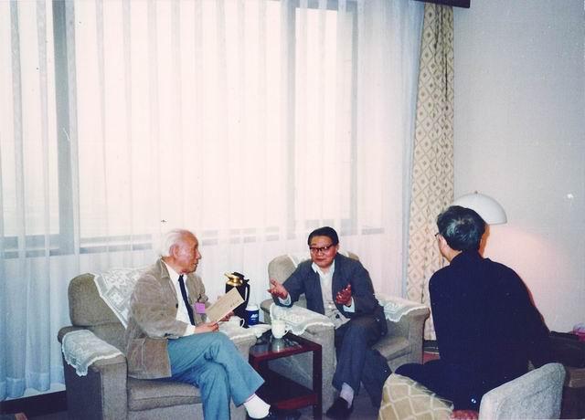 1993年3月中旬,潘家铮、胡海昌赴钱令希下榻的北京中关村专家公寓看望恩师(左起:钱令希潘家铮胡海昌)。