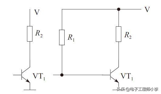 无论是NPN型还是PNP型晶体管,是采用正极性电源还是负极性电源供电,偏置电路一般由两个电阻构成,这是偏置电路的特点。