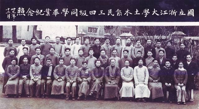 钱令希珍藏的浙江大学土木系1945届学生毕业合影(前排左八为钱令希)
