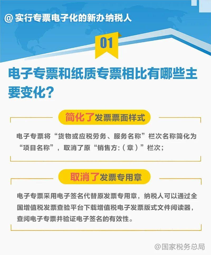 为贯彻落实国务院关于加快电子发票推广应用的部署安排,国家税务总局发布了《关于在新办纳税人中实行增值税专用发票电子化有关事项的公告》(国家税务总局公告2020年第22号),决定先在部分地区新设立登记的纳税人中实行增值税专用发票电子化(以下简称“专票电子化”),此后逐步扩大地区和纳税人范围。增值税电子专用发票(以下简称“电子专票”)与增值税纸质专用发票(以下简称“纸质专票”)相比有哪些变化?新办纳税人用什么软件开具电子专票?......9张图为您解答常见热点问题,快收藏!