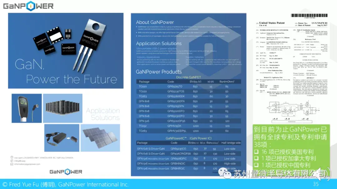 这里是我们的一些产品介绍。到目前为止,GaNPower拥有专利及专利申请38项,其中包括16项已授权的美国专利。