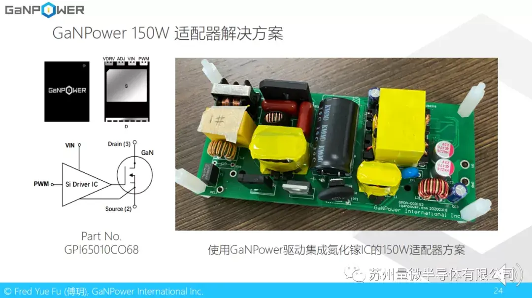 这里是我们150W适配器解决方案。使用的是我们集成驱动的氮化镓器件。