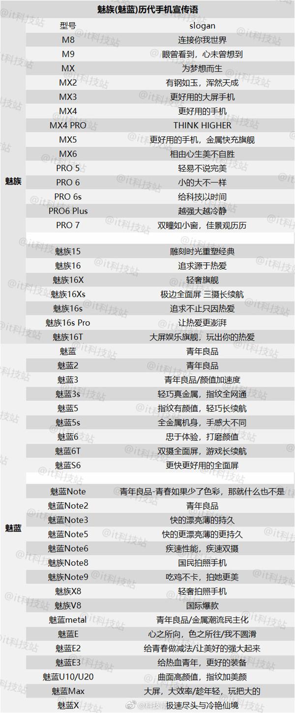 魅族(魅蓝)历代手机宣传语汇总(图源微博)