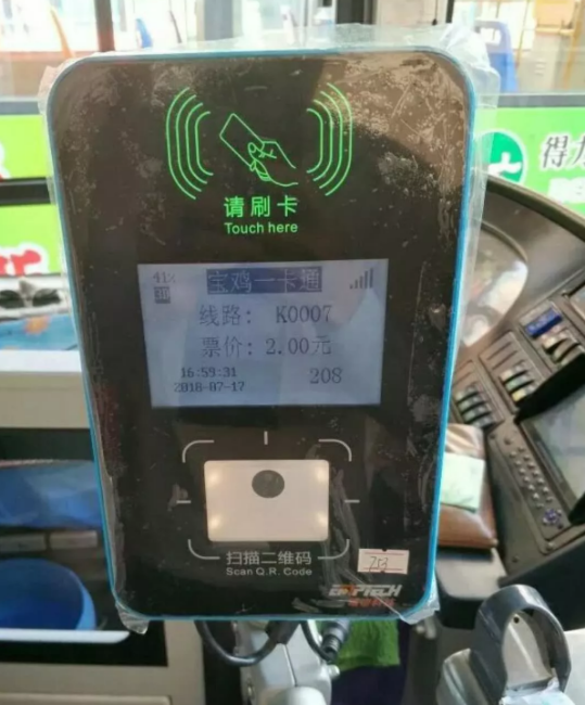 刷卡区(机器上方黑色部分)支持西秦通公交卡刷卡和电信NFC卡刷手机乘车