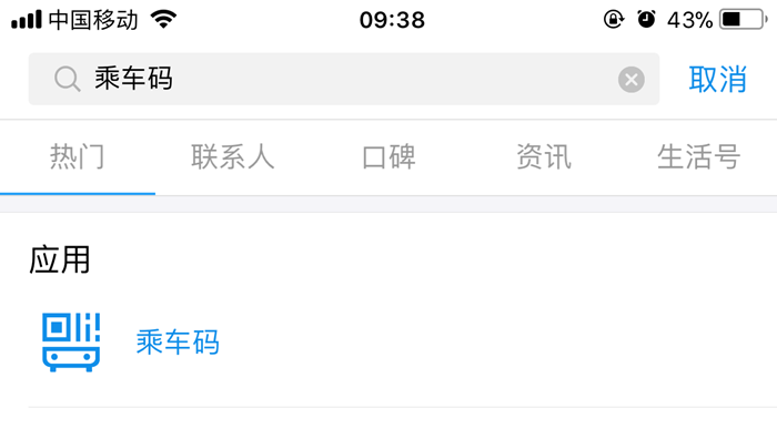 打开支付宝,在搜索框中输入“乘车码”↓↓↓