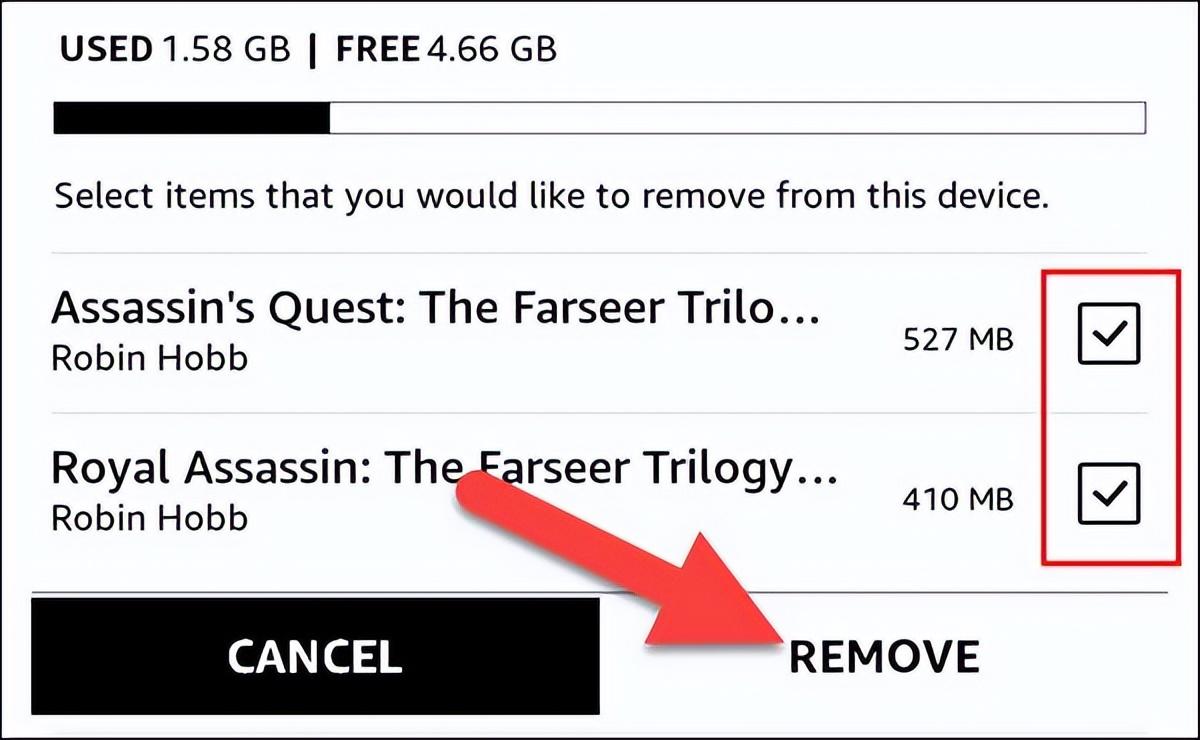 这里的所有都是它的!这些书籍将不再占用 Kindle 阅读器的存储空间。它仍会在您的 Kindle 图书馆中。