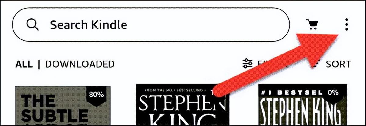 首先,我们将从您的 Kindle 中删除实际的电子书文件。请注意,这不会从您的 Kindle 图书馆中删除该书。在 Kindle 主屏幕上,点击右上角的三点菜单图标。