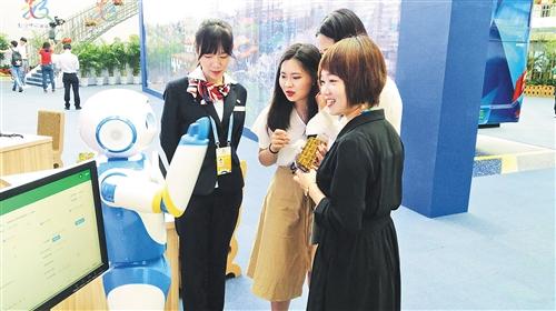 福州市行政服务中心的智能机器人“榕榕”为观众提供政务咨询服务。