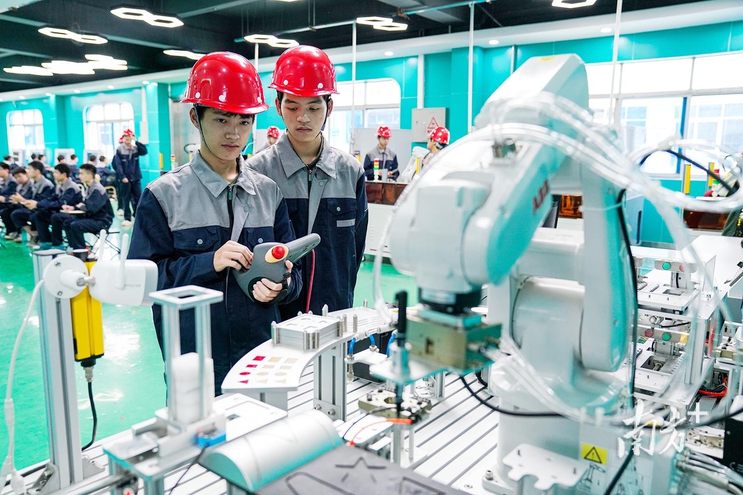 此专业就业前景广阔,随着智能制造的迅速发展,工业机器人技术人员岗位需求也越来越大,毕业生可到工业机器人及自动化相关的企业,从事工业机器人及工作站的安装与调试、操作与维护、集成与管理、技术与生产管理、系统编程、服务与营销、产品销售、售后服务等工作。学生也可通过“3+证书”高职高考升往大专工业机器人技术专业,或本科机器人工程专业方向继续深造。