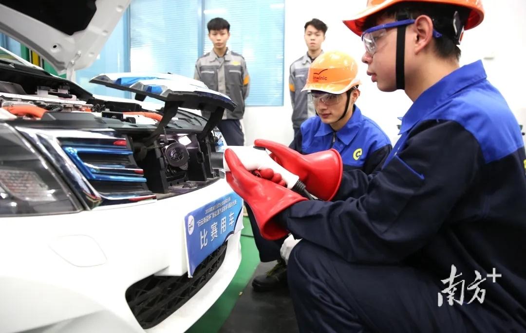 该专业师资力量雄厚,有市“优秀教师”、市“教学能手”4名,新能源国赛裁判3名,双师型教师6人。该专业实训车辆11辆,固定资产785万元;建设有比亚迪新能源汽车技术技能人才培养基地,该基地是全国首批职业教育校企深度合作项目;建设有东莞市定点实习实训基地,能够满足学生实习和就业需要。专业创办以来,成绩显著,连续4年获得新能源汽车运用与维修赛项省赛一等奖。