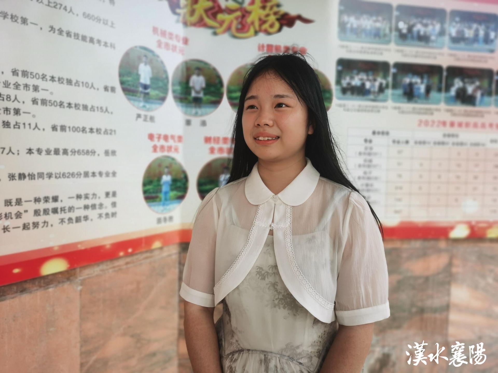 襄城职高计算机类技能高考生曾心怡说:“这次技能高考我考了678分,计算机专业全省第二,超过了本科线46分,心仪的大学是湖北文理学院。”