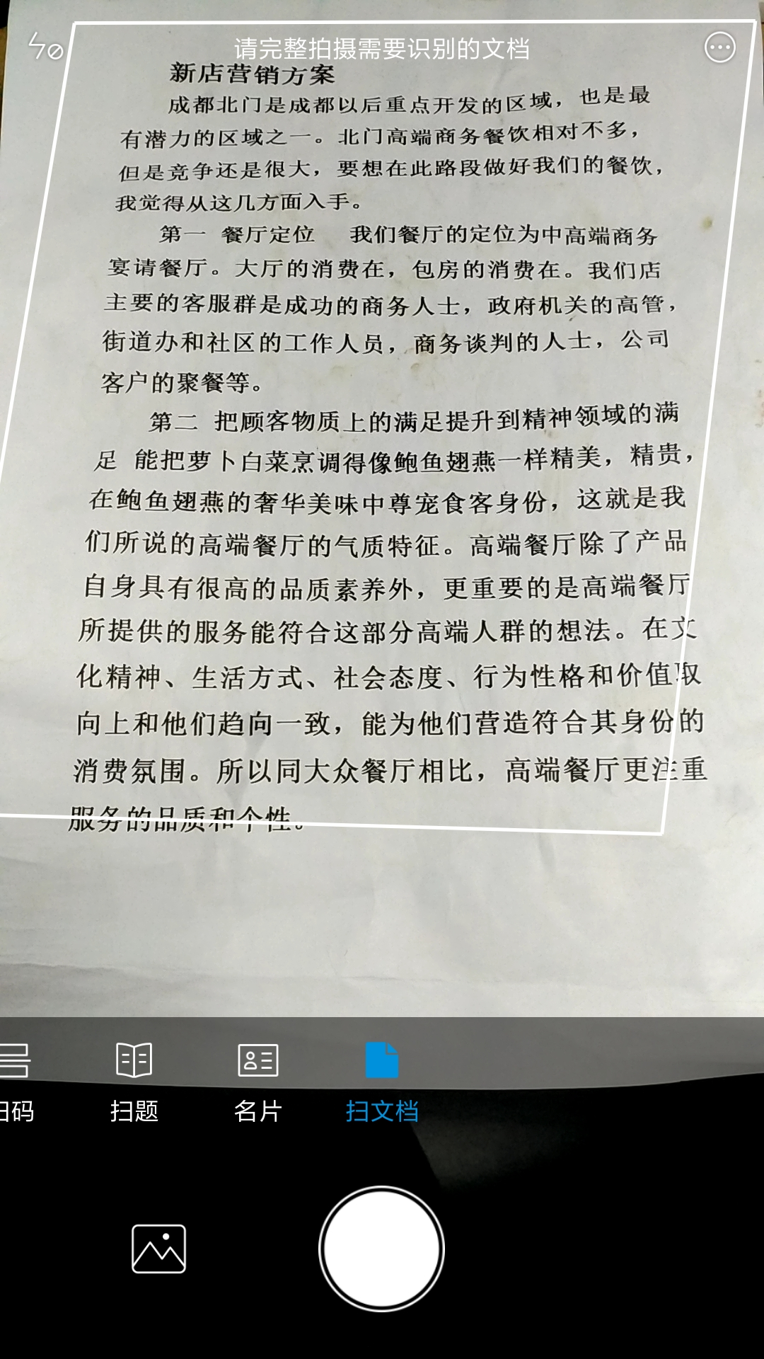 然后用手机摄像头对准纸质文件,按下快门拍摄。