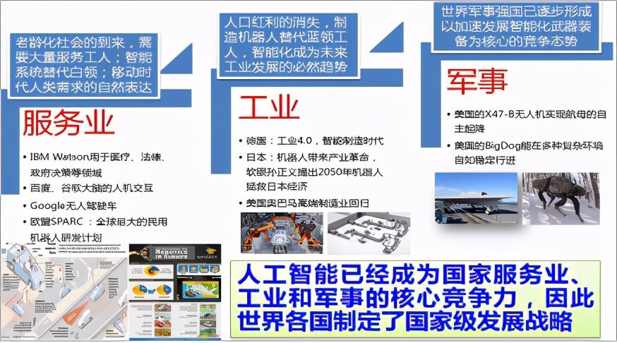 经过六十多年的发展,上升到国家战略地位的人工智能已经敲响了“未来之门”,为人类拉开了第四次工业革命的序幕,除了成为军事、工业核心的竞争力,更成为大国之间竞争的新焦点。