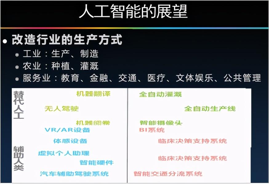 从理论发展上,人工智能将从感知智能向认知智能发展,通过编码进行快速计算,降低功耗,从“后深度学习”到量子计算,从情感计算到伦理思考,让机器做到“察言观色”。从产业发展来看,会从人脸识别慢慢向各行各业延伸,在各领域百花齐放。软件、芯片、算法、5G⋯⋯特别是5G大幅提高通信带宽后,怎样把软件算法芯片和5G融合到一起是产业发展的重要潮流。