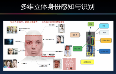 身份识别是大家见得最多的。通过人脸、年龄、性别、姿态、衣着进行身份识别,虽然目前判断人的情绪方面精度还不是特别高,但已能通过呼吸时人脸部血管的伸缩变化,精确“看见”这个人的心跳和呼吸次数。