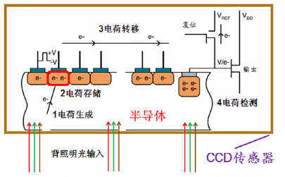 CCD的基本工作过程主要是信号电荷的产生、存储、转移和检测: