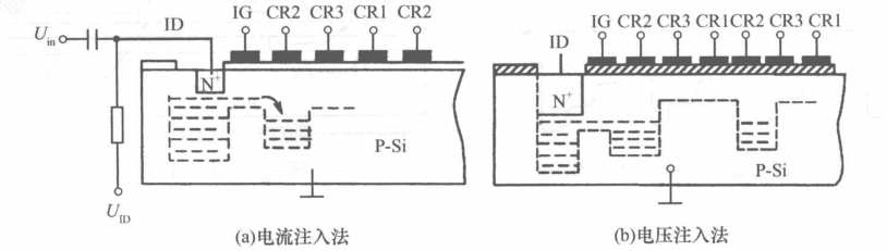 所谓电注入就是CCD通过输入结构对信号电压或电流进行采样,然后将信号电压或电流转换为信号电荷注入到相应的势阱中。电注入常用的有电流注入和电压注入两种方式。