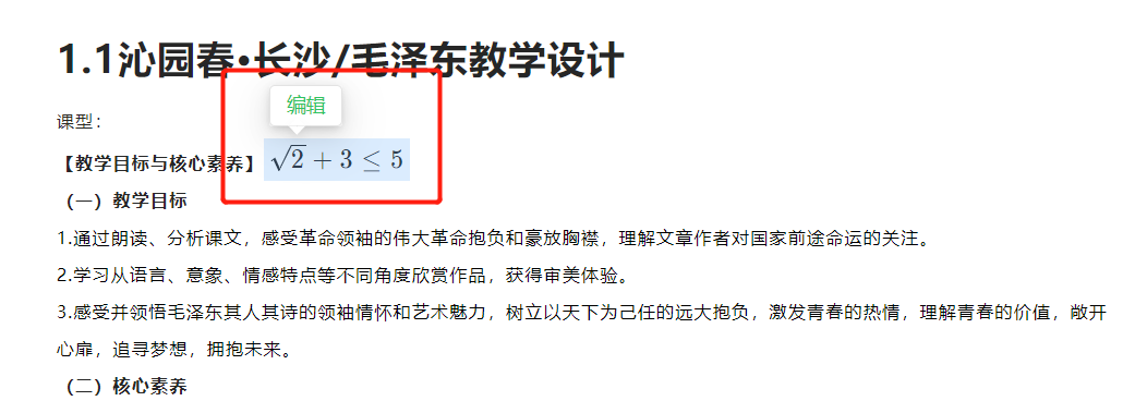 公式支持二次编辑,而非是图片哦,当然效率上和LaTeX输入上还是有些差距的,但对于少量公式输入的场景来说,直观输入更能降低使用者的学习成本,这也是一个重要的考量因素。