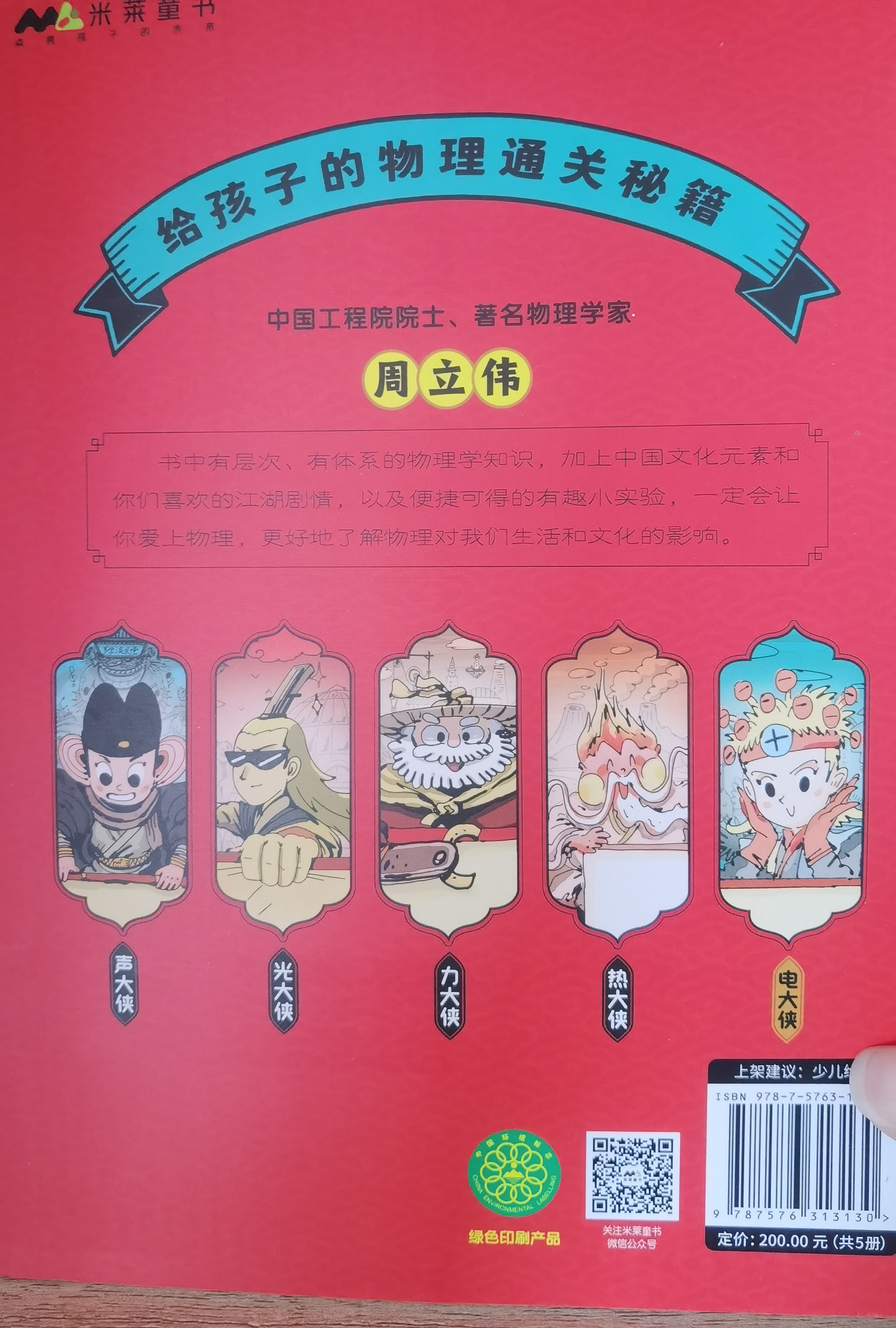 这套书一共有5本,包含了物理学科中的五个大概念:声学、力学、光学、电学、热学。