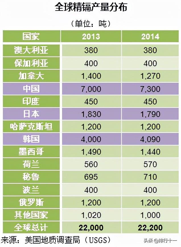 据美国地质调查局(USGS)最新公布数据显示,2014年全球镉产量2.22万吨,与2013年持平。亚洲是全球最大的初级镉金属产区,以中国、韩国、日本为主。镉的用途和应用领域
