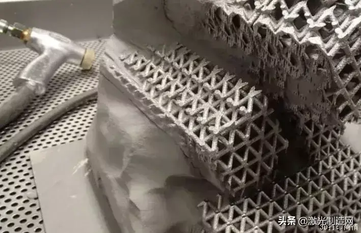 当完成后,零件不会立即可见,因为他们在粉末桶内被非烧结粉末覆盖着,必须先移除非烧结粉末。