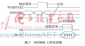 ADC0808的工作流程图如图3所示,故对ADC0808的操作分为以下4个步骤: