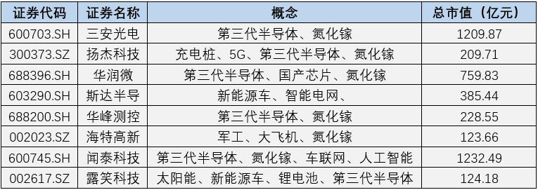 整体上看,A股第三代半导体概念板块的总体市值体量不大,大量上市公司集中在300亿市值以下,并且个股的年内涨幅呈现出较为明显的两极分化趋势。