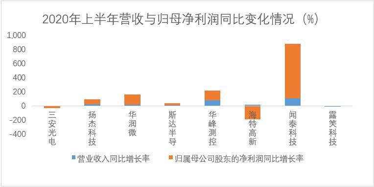 从第三代半导体行业重点上市公司2020年上半年的经营数据来看,大多数企业的营收与利润均实现增长,且利润增速普遍高于营收增速。在研发方面,根据2020年半年报数据,第三代半导体板块的平均研发占比为5.25%,其中总市值在200亿元以上的企业平均研发投入占比为6.05%。