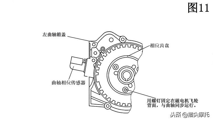 以CL125-6电喷系统为例作,曲轴位置传感器(如下图)被安装在左曲轴箱盖侧面,主要用来检测曲轴的转角相位和发动机转速。