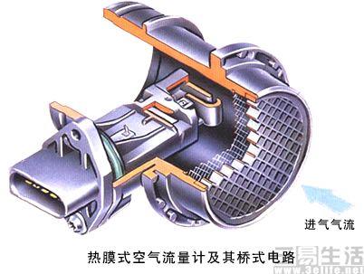 由于空气温度变化会直接影响空气密度及空气中的氧气含量,从而直接影响进气量。热敏电阻式温度传感器可随着温度的变化而改变电流的大小。