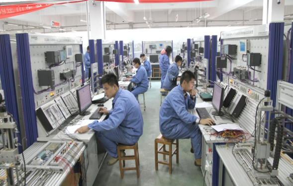 依托山东省公共实训基地,规划智能制造高端实训中心和电气工程实训中心,建立智能控制生产线、文创产品生产线和机器人制造生产线三条产业线,以及满足基础训练、专项训练及1+X培训考试需要的机电一体化、工业机器人、工业4.0、电子技术、智能制造系统集成应用等35个专业实训室,充分满足学生工学交替、顶岗实习、1+X证书、跟岗实习等实践教学需求。系部现有35个校内专业实训室,实训基地总面积2万余平米、设备总值9000余万元,实训工位3500余个。同时与省内外大中型企业联合,共建了40余家校外实践基地,满足基础、专业和综合实训项目的教育教学。