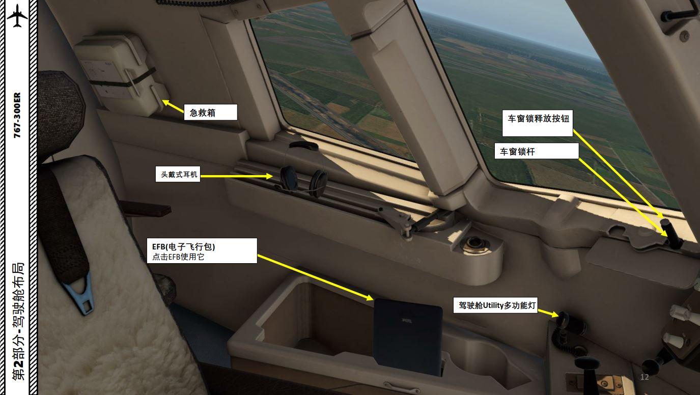EFB(电子飞行包)点击EFB使用它头戴式耳机急救箱车窗锁释放按钮驾驶舱Utility多功能灯车窗锁杆