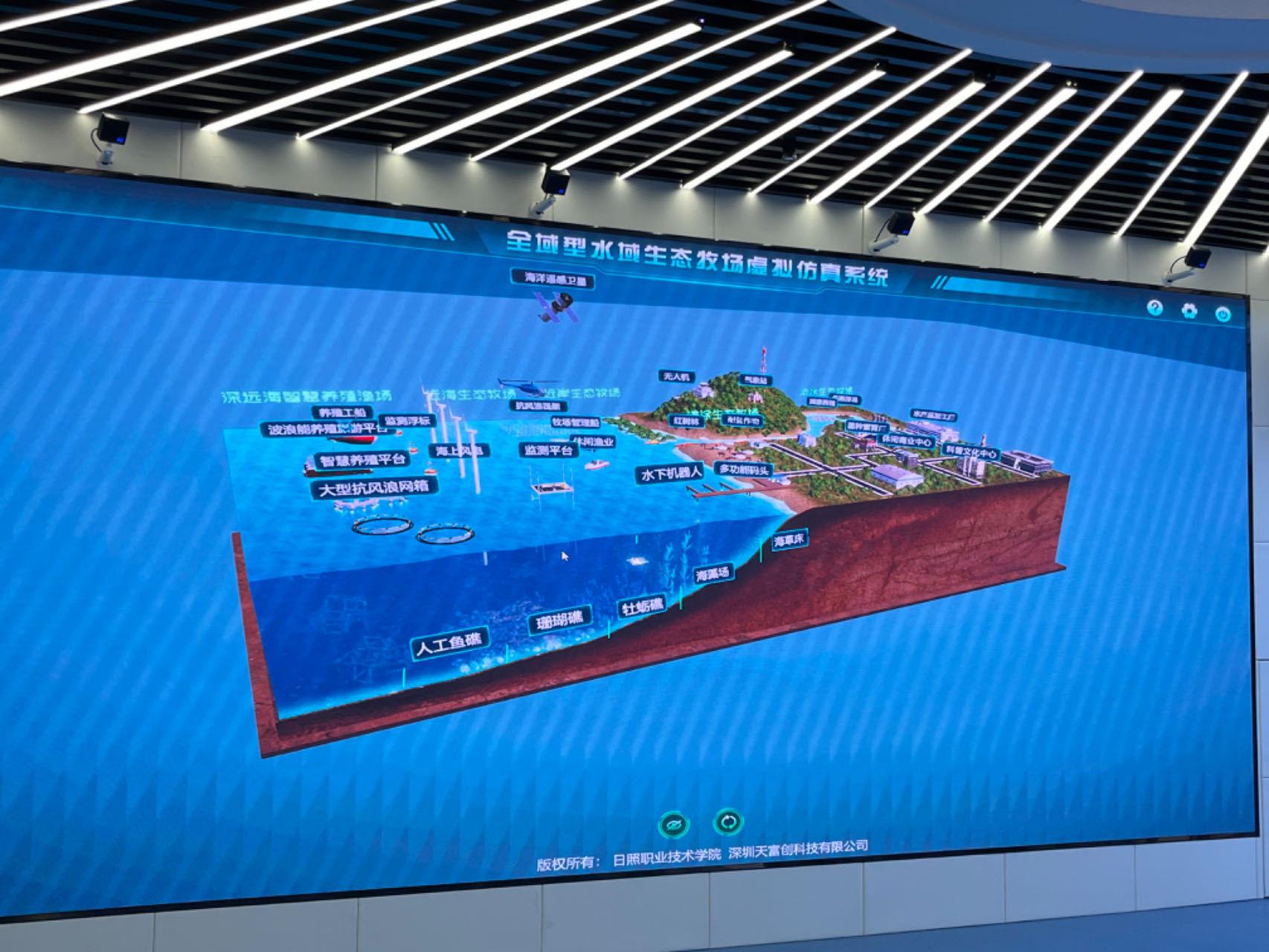 “微观看不见、深海进不去、实训周期长”,这是当前海洋渔业实训教学中的痛点、难点。在日照职业技术学院,智慧海洋渔业虚拟仿真实训基地将实时的海洋水下养殖场景投放到学生眼前,尽可能在教学中为学生提供海洋牧场全产业链的概貌。