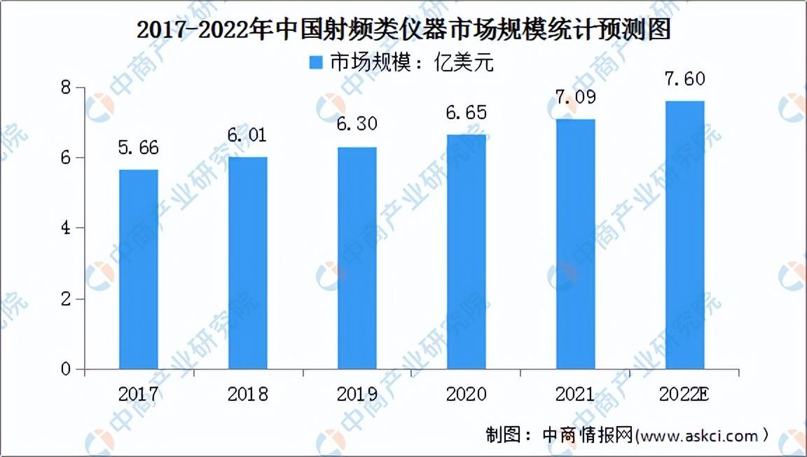 数据显示,随着中国大力推广5G商用化,中国射频类仪器(不含综测仪)市场的增长速度高于全球水平,从2017年的5.66亿美元增长至2020年的6.65亿美元,预计2022年将达到7.60亿美元。
