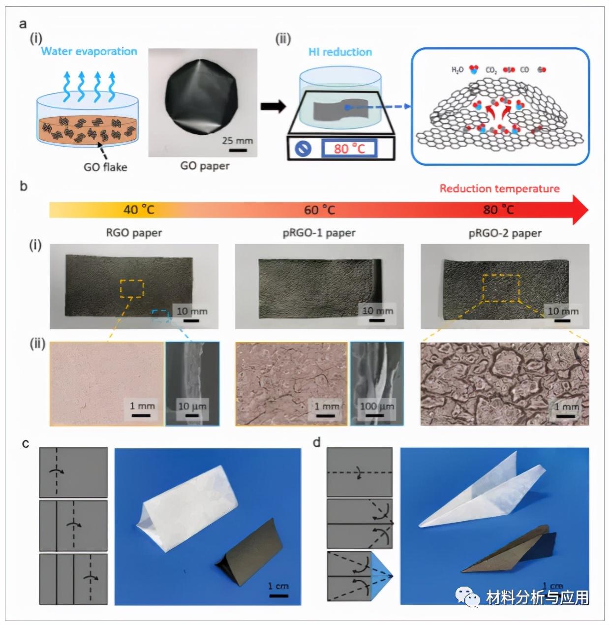 图2、独立式多孔RGO纸的制备、表征和柔韧性。