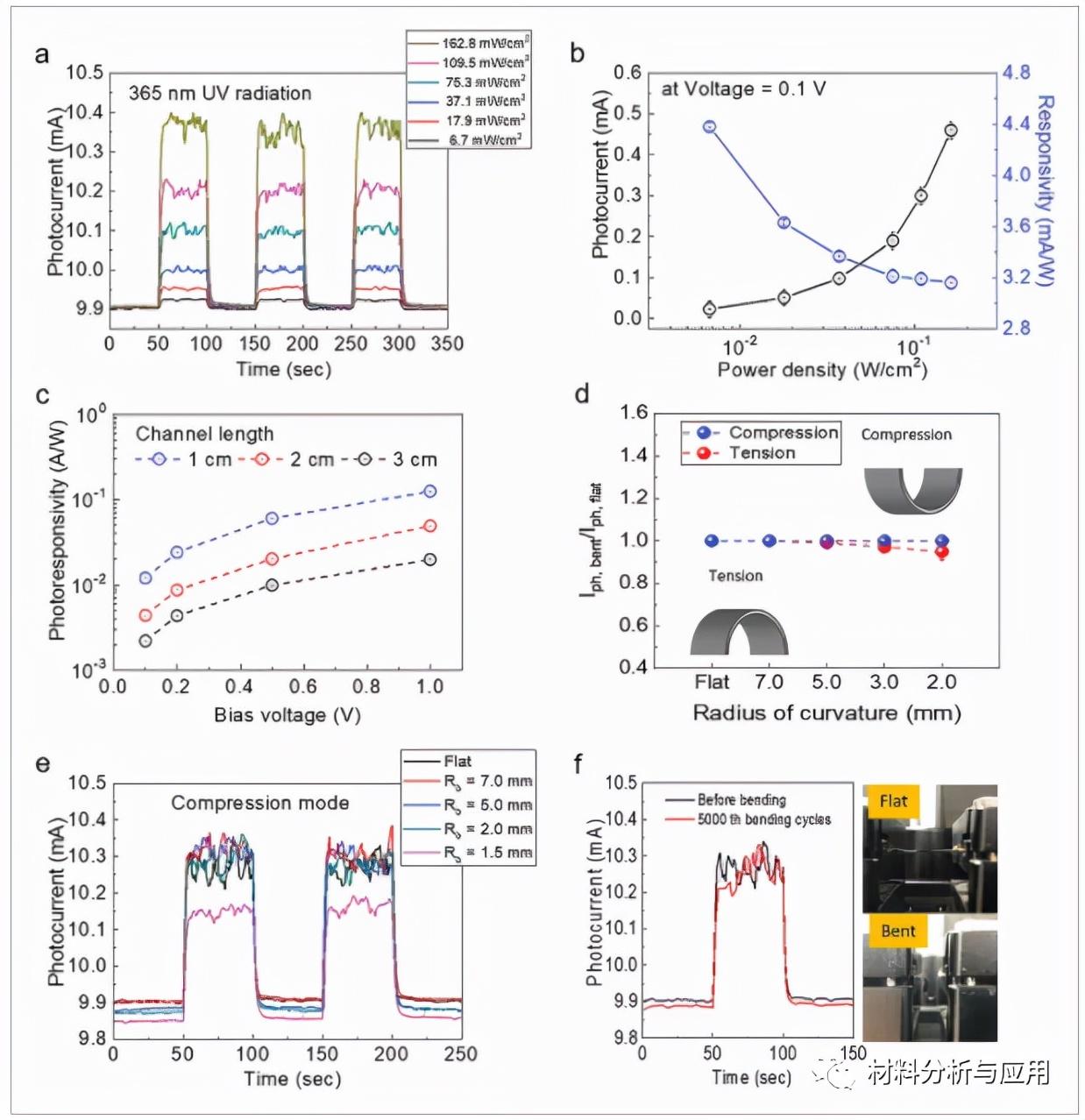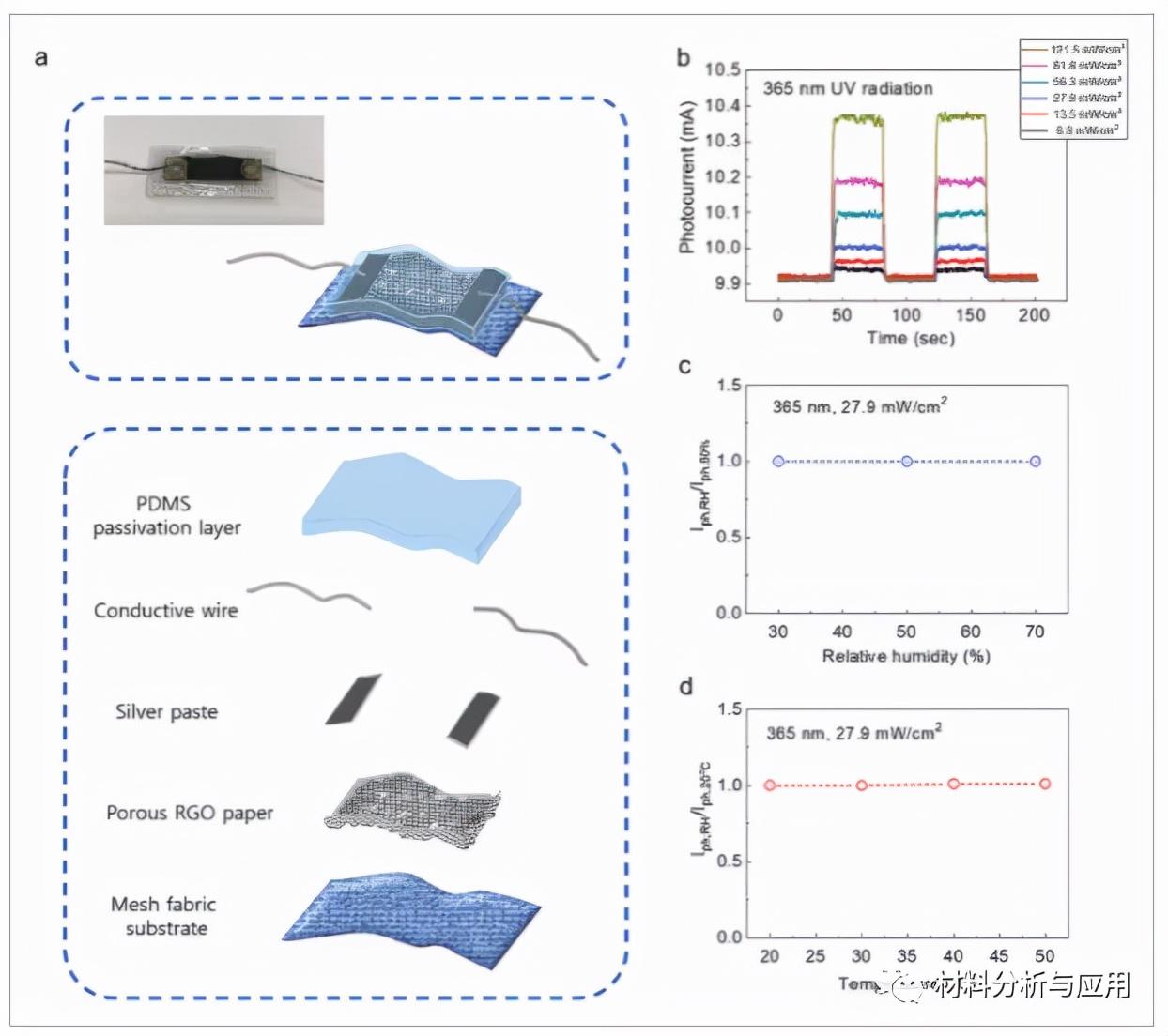 图5、PDMS封装的pRGO UVA 传感器的结构和环境稳定性