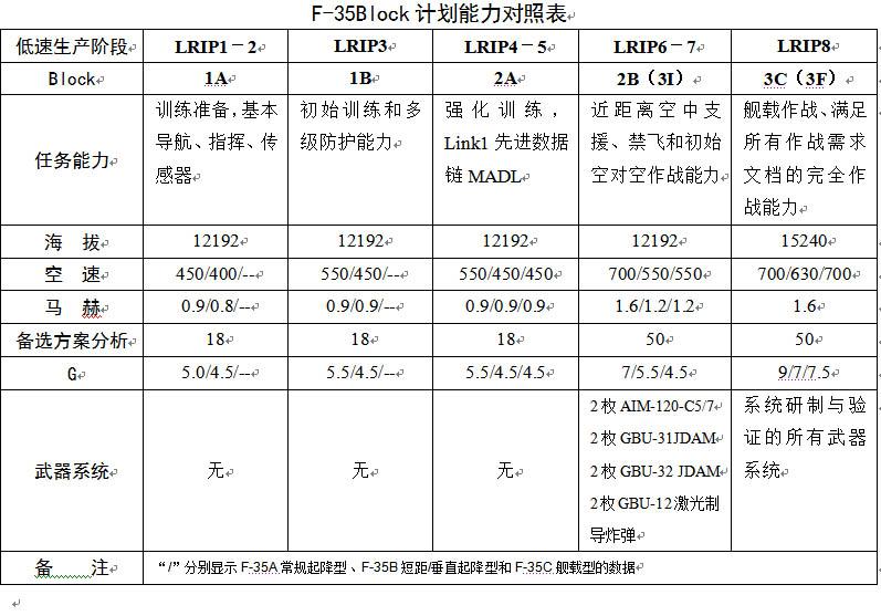 我自己用我的哥做的F-35Block计划能力对照表,爱咋咋地,爱过不过
