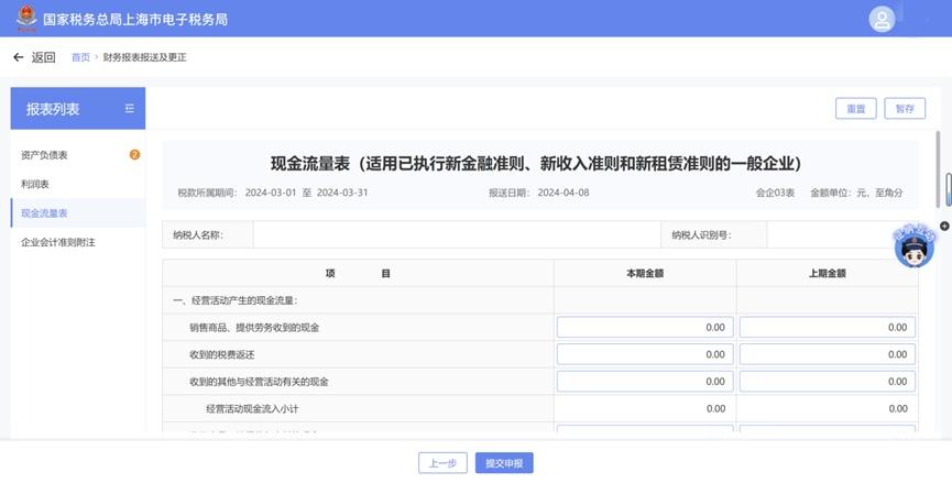 全国统一规范电子税务局申报时发现没有现金流量表怎么办?