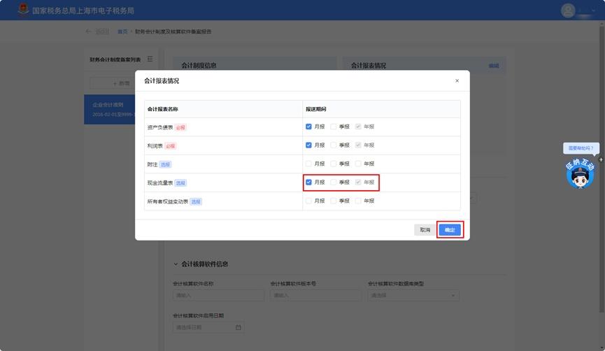 2.进入修改后,勾选“现金流量表”,点击【确定】完成修改。