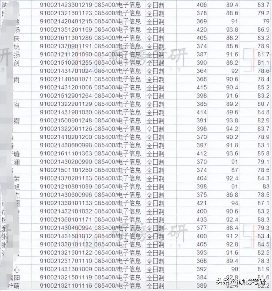电子信息专业在国防科技大学并不是很突出的专业,所以相对的竞争难度会略小一点,每年招生人数也比较多,近两年还在不断扩招,复试比例也很稳定,总体来说还是不错的。22年拟录取录取平均分下降了10分,不过还是建议同学以385的要求自己,初试分数越高越占优,复试环节对一志愿考生比较公平,初试占比很重。除了考英一数一难度有点大之外,像国防科技大学这类特殊的院校,可能会要求考生提交些材料,考生注意一下每年最新的招生简章。对于大部分考生来生,难点就是分数比较高。