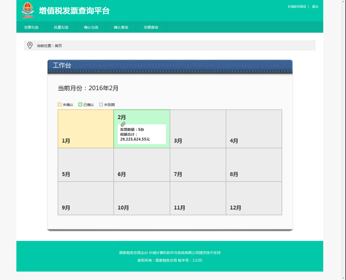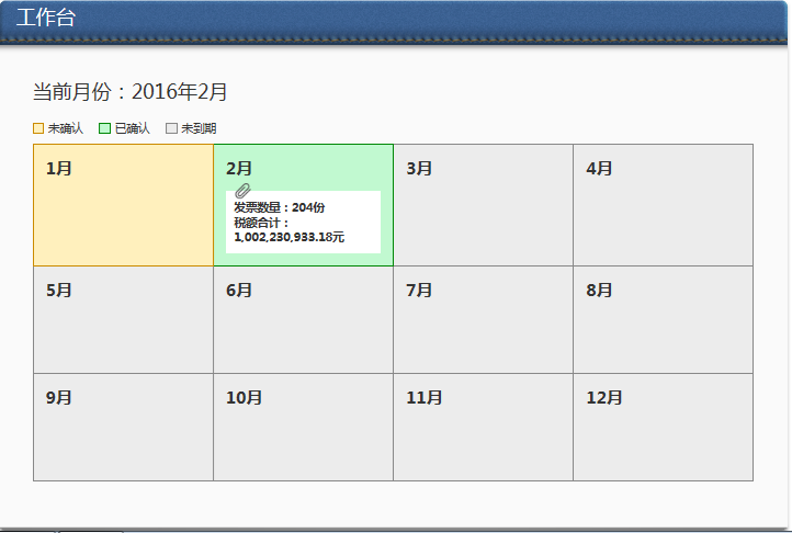 4、在当月勾选确认操作成功执行完成后,系统主页面中对应月份的卡片将变为绿色已确认的状态。如下图所示: