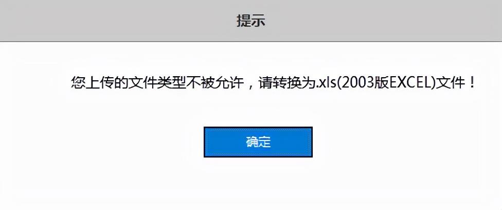 6、如果上传的文件类型不正确,系统会出现如下提示: