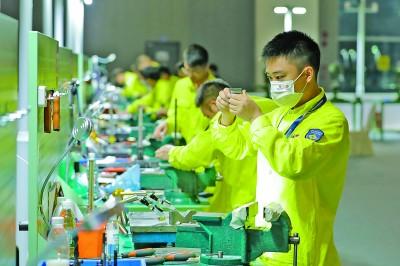 选手在参加第七届全国职工职业技能大赛决赛的钳工工种比赛。新华社发