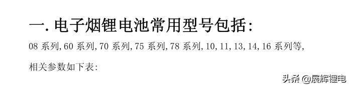电子烟目前的市场还是很不错的,3年以前被美国制裁以后,有2年时间,电子烟产品发展缓慢,那么电子烟用的 那些型号 的电池呢?请看下表:
