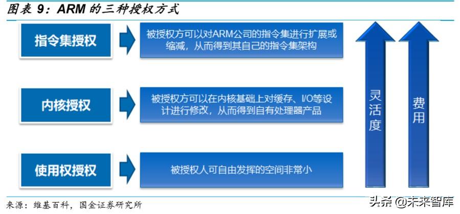 使用权授权的产品则是指 ARM 已经设计好的 CPU/GPU。 被授权人可 以使用 ARM 设计好的 CPU/GPU。在这一种授权中,被授权人可自由 发挥的空间非常小。