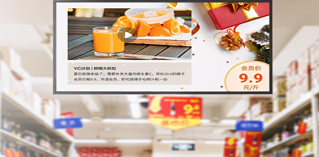 使用大屏展示当季果品,给顾客带来直观的视觉体验,激发消费热情。商家可以定时展示优惠商品或活动,让促销更醒目,还可以在大屏上放置活动二维码,顾客扫码互动,提升营销效果。