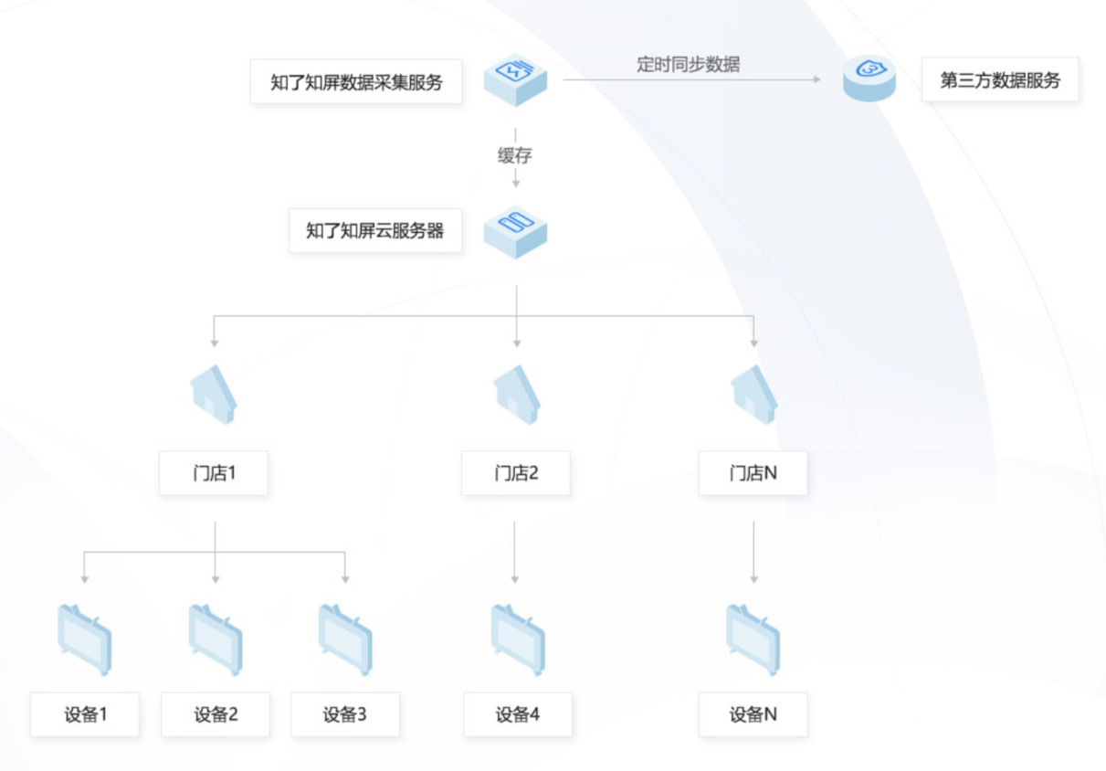 知了知屏信息发布系统兼容电视机、广告机、显示屏等各种设备,节省服务器购买成本,云端统一管理,可一键远程发布内容,帮助连锁商家实现优化管控。
