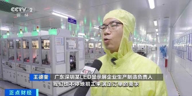 广东深圳某LED显示屏企业生产制造负责人 王德奎: 海外订单占了一半以上,以往海外订单占三四成,我们不停地招工来满足订单的需求。