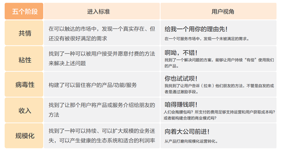 关隘模型的第一步是共情——发现一个未被满足的需求,有足够强的理由引发用户的兴趣,这是产品存在的理由;接下来是粘性——解决方案要能够让用户愿意持续使用;然后是病毒——用户愿意告诉或拉来他们的朋友一起使用;再然后是收入——你得有支持持续运营和增长的收入来源;最后才是规模化。