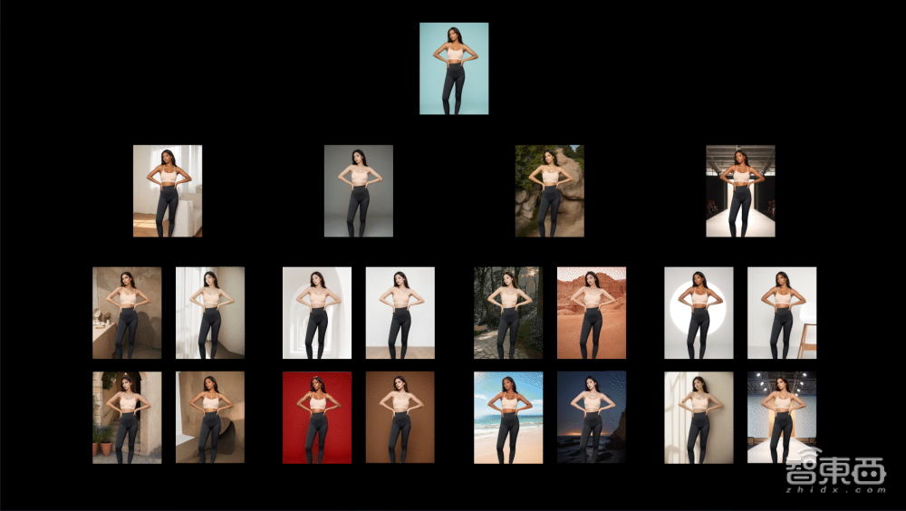 当输入一张同事随手拍的照片,在选择了模特和场景之后,智东西看到,仅仅几秒时间,同事就被换成一个更适合上镜的商务人士,一批时尚卖家秀照片就产生了。